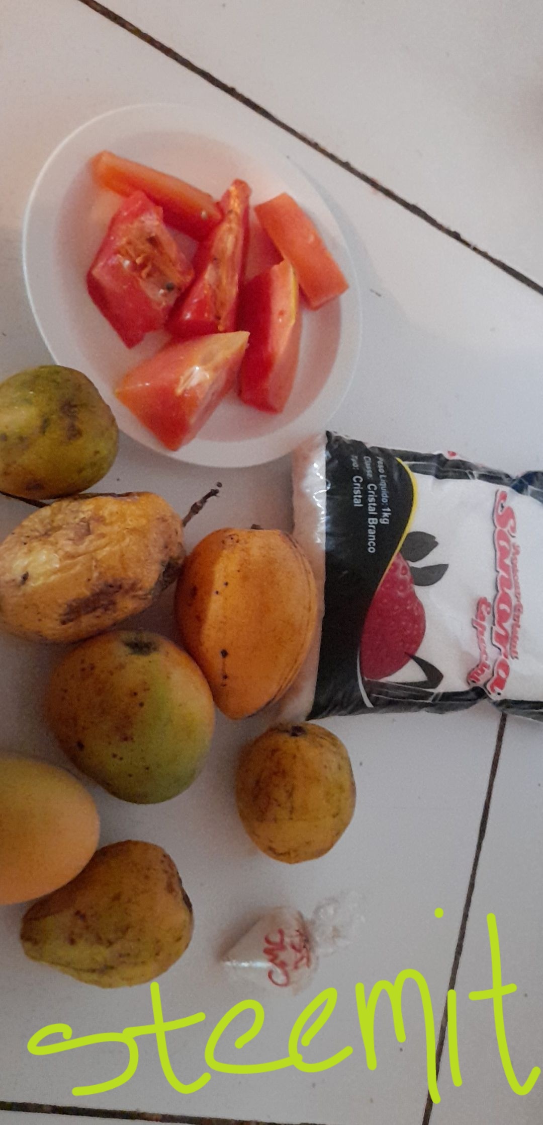 Se coloca todo en una olla, se le agrega agua hasta tapar las fruta y se coloca en la cocina por 5 min.
