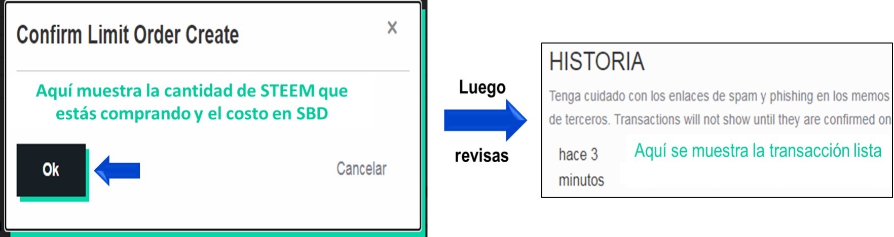 Un vez que te has decido a comprar algunos Steem, solo debes confirmar tu orden de compra y en poco tiempo los tendrás en tu billetera.