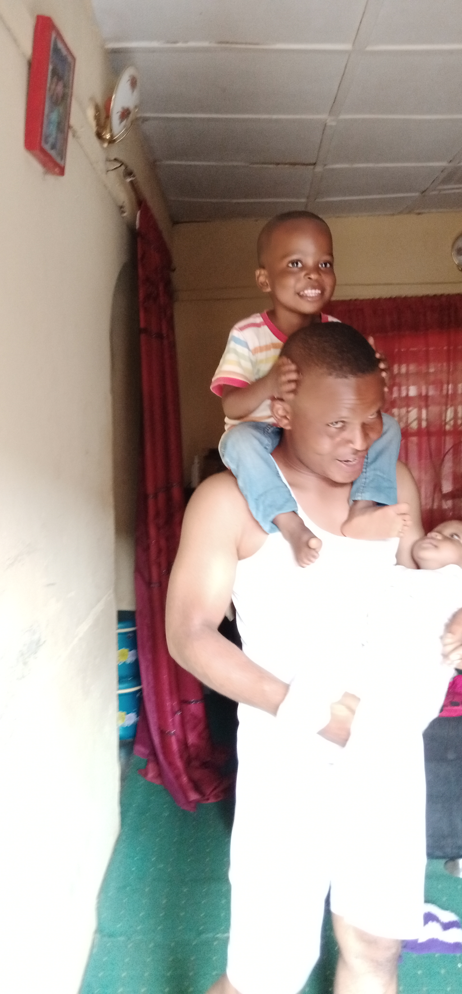 @pato84 carrying his son on the head and holding his daughter in his alms
