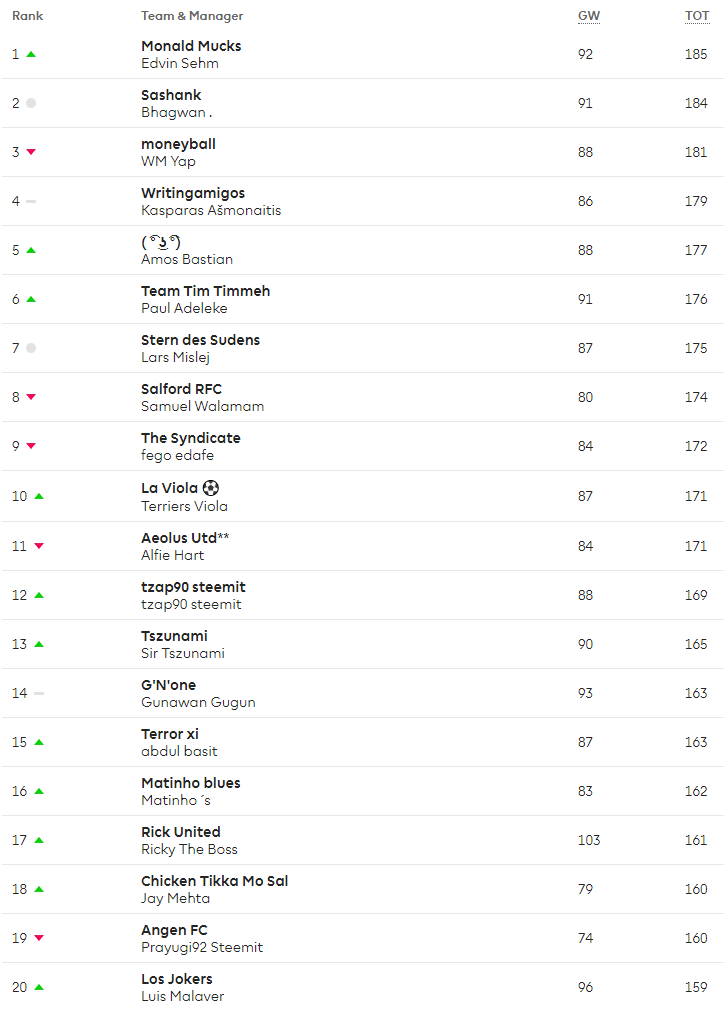 Better gameweek for me, Salah and Richarlison delivering as expected, 1 out of 3 clean sheets wbut Tarkowski scored and Agüero as captain.