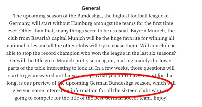 Blickt man auf die letzten Platzierungen, so scheint Augsburg stets im zweiten Drittel der Tabelle zu landen. In der Bundesliga zu bleiben wird sicherlich das Hauptziel des FC Augsburg sein - allerdings erscheint für den bayrischen Verein etwas mehr als im Vorjahr möglich. Eine hohe einstellige Platzierung scheint realistisch, ein Startplatz für internationale Turniere würde meiner Meinung nach eine Überperformance der Spieler erfordern. Wenn man darüber nachdenkt, gibt es über diesen eher unspektakulären Club nicht wirklich viel zu sagen. Torhüter Marwin Hitz verließ den Verein, während drei deutsche Spieler, Andre Hahn, Julian Schieber und Felix Götze (ja, Mario’s Bruder) sich dem Kader von Cheftrainer Manuel Baum anschlossen. Der Kern des Teams bleibt derselbe, was natürlich in der kommenden Saison von Vorteil sein könnte. Ich wäre nicht überrascht, wenn wir den FC in dieser Saison im soliden Mittelfeld mit etwas mehr Abstand zur Abstiegszone als im letzten Jahr sehen würden. Andere Szenarien sind natürlich möglich, wären meiner Meinung nach aber eine ziemlich große Überraschung.