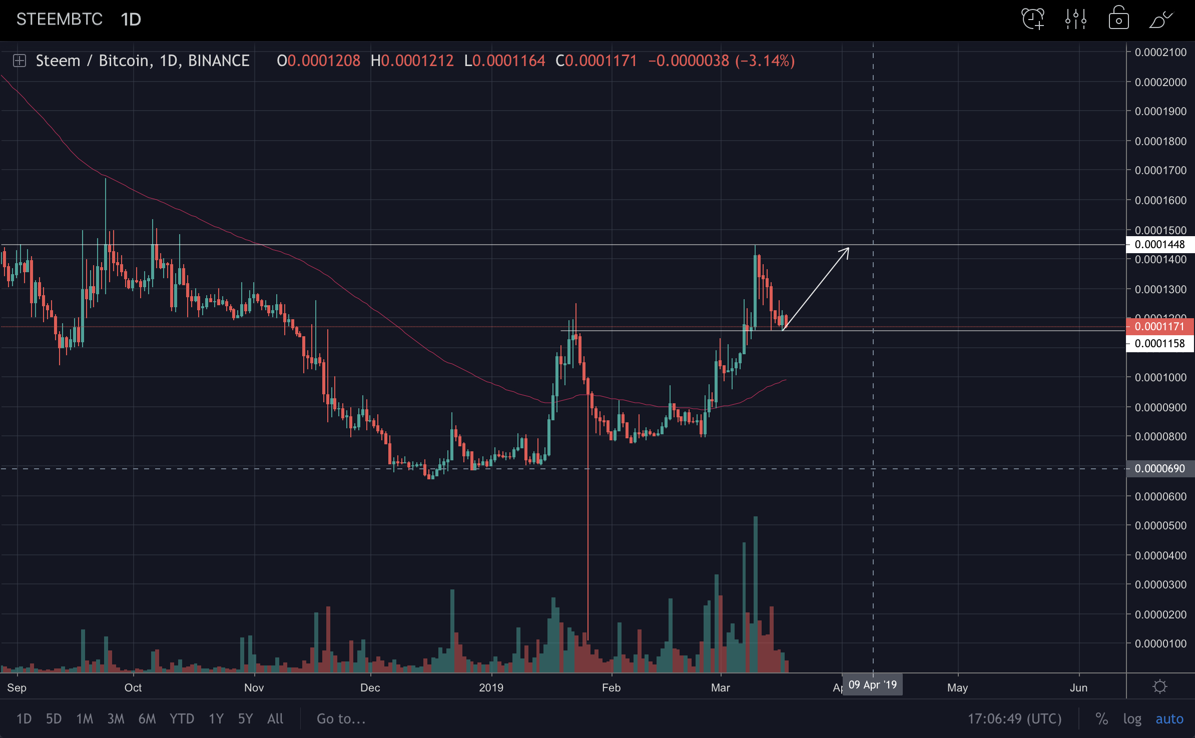 It has been a while since my last post on Steemit regarding Technical Analysis. Today, I have just checked the Steem/BTC rate on Binance and I have found some nice setup.