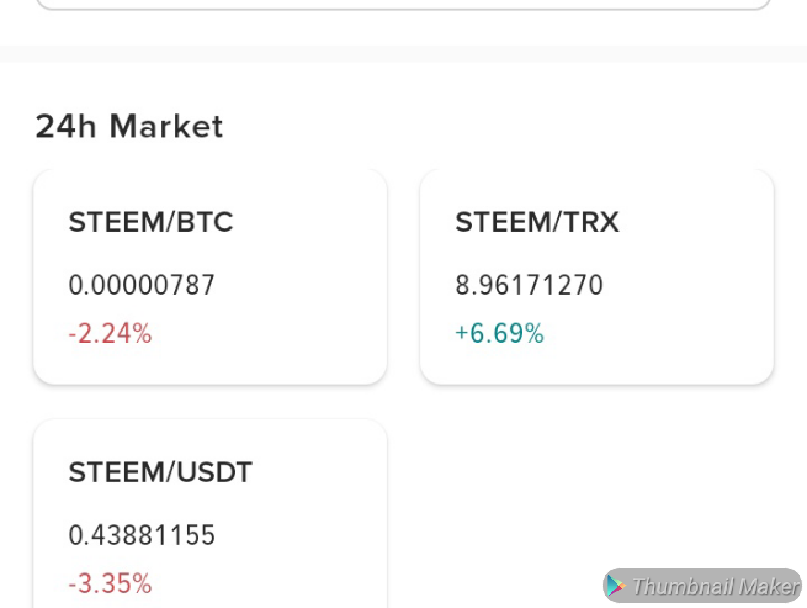 Steem in btc decrease 2.24% and steem in tron increase 6.69% while in usdt decrease 3.35% traders keep calm your trade let's stir a cup of coffee.