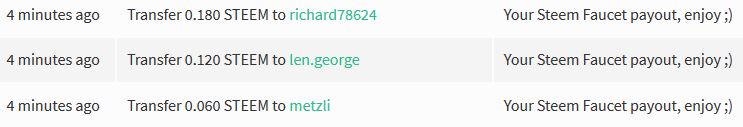 If you want to sponsor this faucet, just send min. 0.2 Steem to @btcsam with memo "Steem Faucet" and get mentioned here for 1 week. All received funds are used to support this faucet. Thanks!