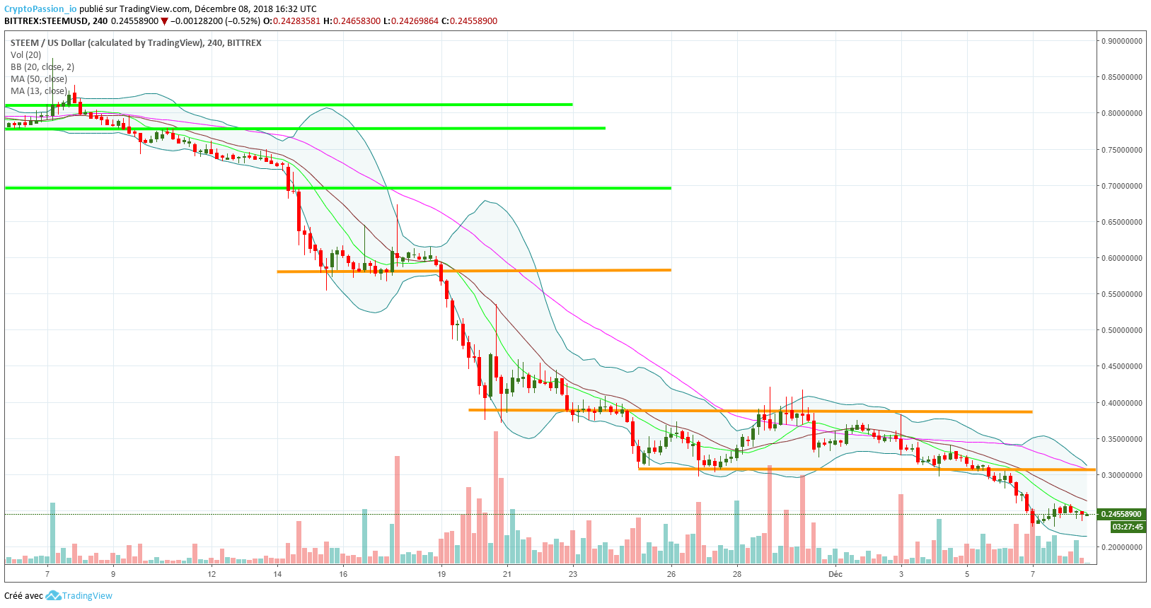 We are doing exactly the same pattern than the BTC. We are just under the resistance line that we broke yesterday and we are waiting a decision of the market. We could try to break that line again and be upper of that line again but if we fail, we could have an accelation of the drop, the buyers showing that they are too weak to break it. Let's see in the coming hours.