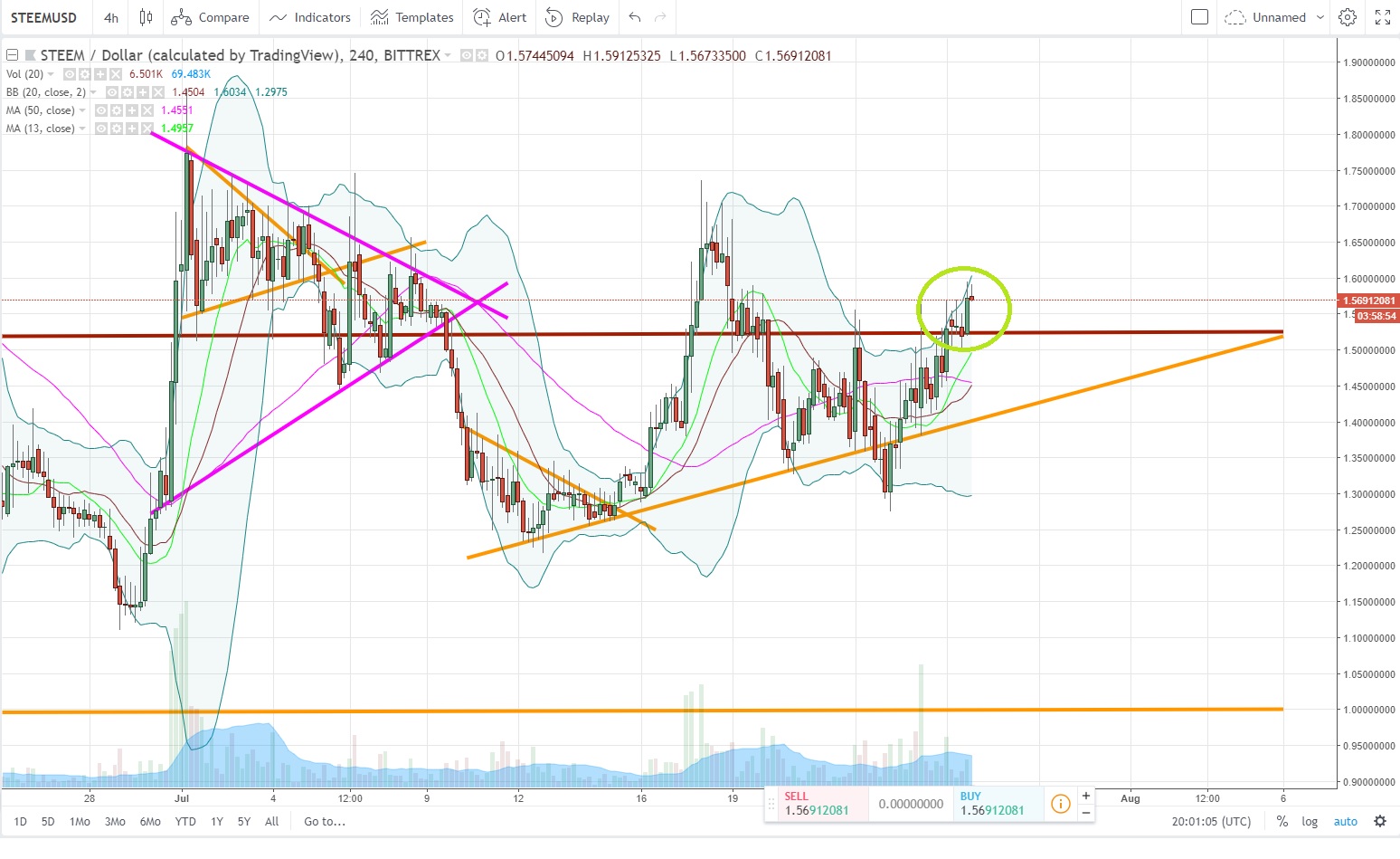 Yes, the god of the crypto finaly saw my words of yesterday. We just broke the resistance line at 1.50$ on the STEEM. This resistance line is an important one as we don't have anymore big resistances before 2$ levels. This is the opportunity for the STEEM to come back in the play and to easly earn around 30% of value in the coming days. Let's keep an eye on the STEEM....