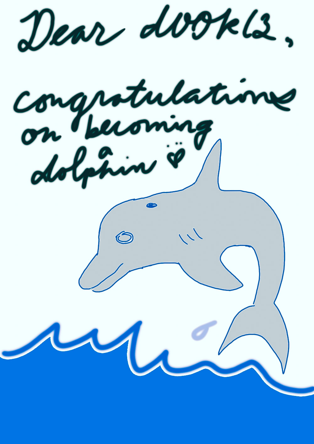 I downloaded a drawing app and drew you a picture with my touch pen to show you how proud I am of you to have made it to dolphin. It's not so good of a drawing but it's the thought that counts...right? It takes a lot of determination to continue on when everything is down, but you're my style.