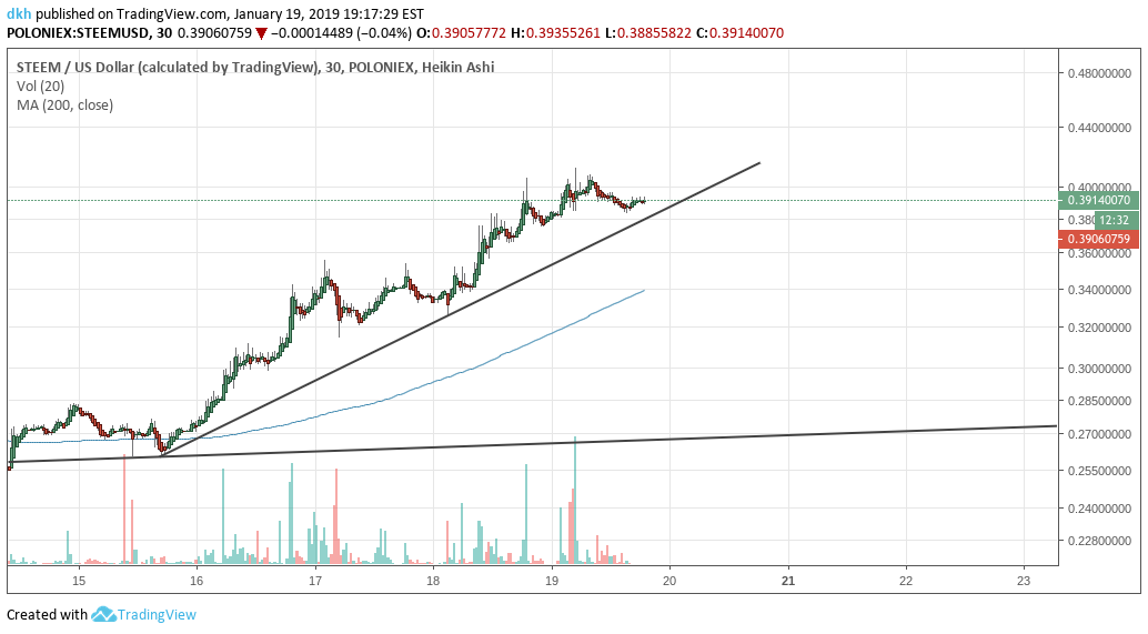 let's see if the 30-M support trend line will hold and boost price higher. The steem token has been nothing but disappointment and heart-break for all of 2018 and now that we have a new year let us see if all that can be left in the rear-view mirror.