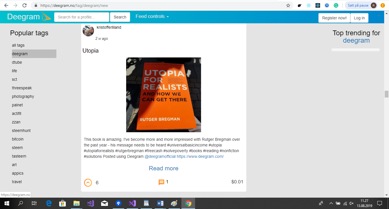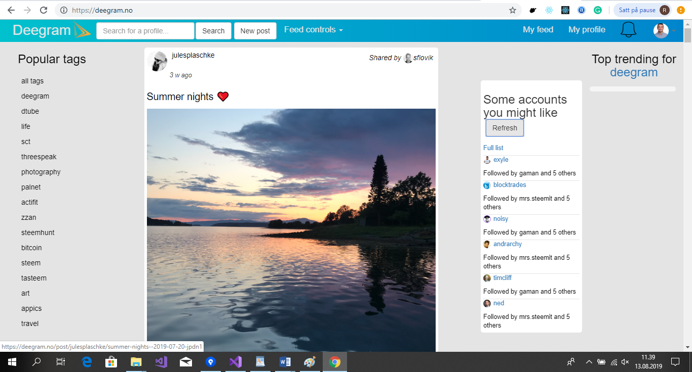 Deegram is a social media dapp for Steem focusing on the microblogging format, such as sharing images, links, short videos or audio, and text content. The beta, for now, is focused on images and text, while video and audio is a bit down the line.