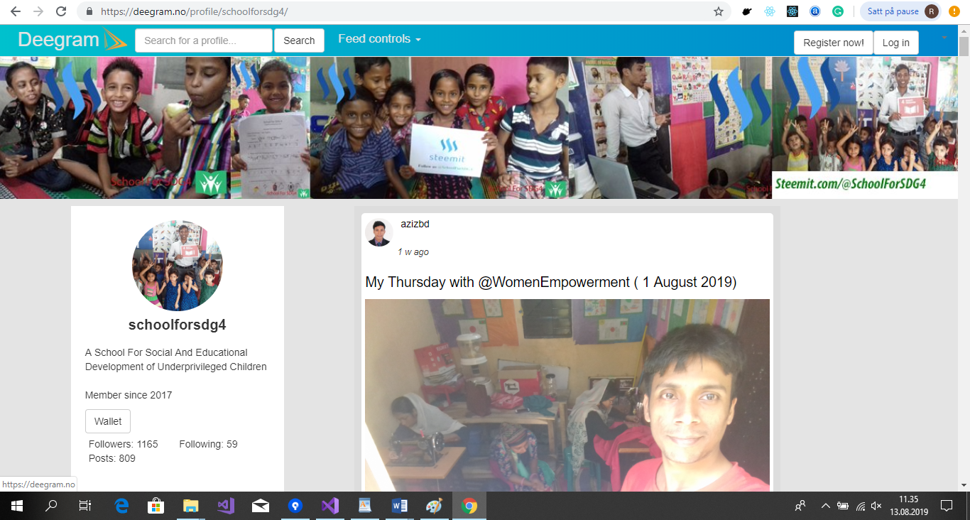 Our goal is that Deegram can be used for good, that monetization of social media content can help make a difference instead of feeding large corporations. From Deegram you can donate earnings directly to verified charities and sustainable initiatives. In the current stage you can donate to @schoolforsdg4 and @womenempowerment , projects by @azizbd directly tackling the UN sustainable development goals 4 and 5.