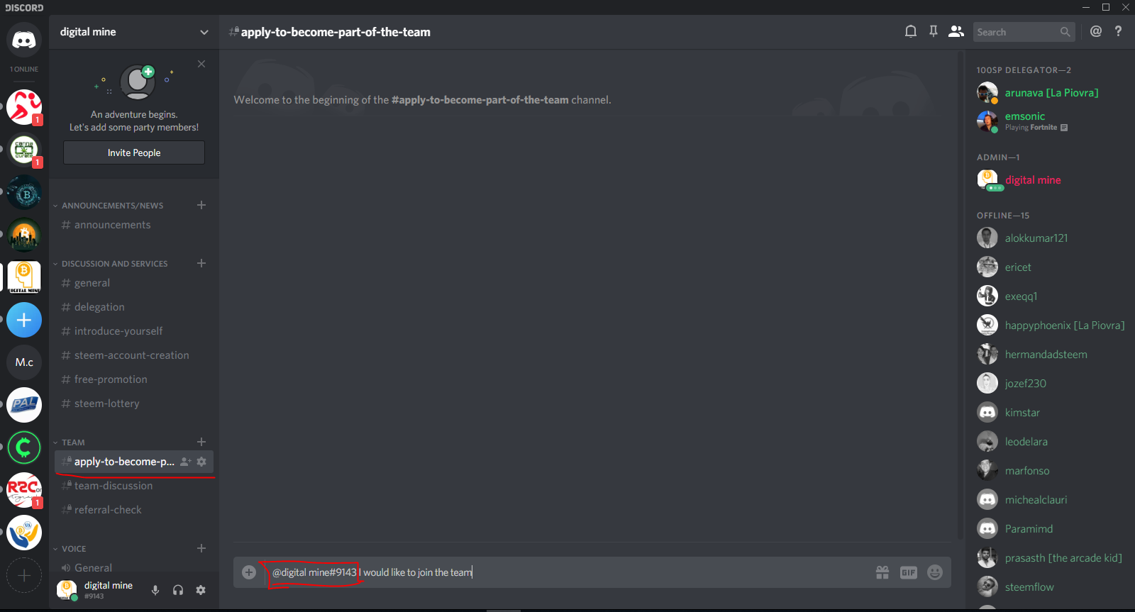 To join, and start advertising and earning, you should subscribe by leaving a message in the apply-to-become-part-of-the-team section at our discord channel (YOU ARE NOT ABLE TO SEE THIS SECTION IF YOU ARE NOT A DELEGATOR) remember to mention me!