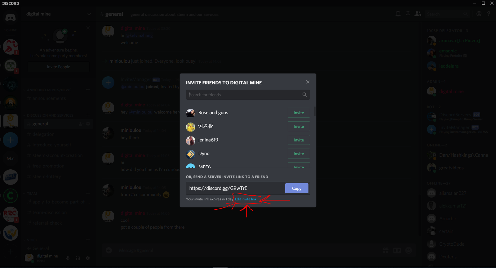 Once you will be granted with the AGENT role you can create your referral link, that it is nothing more than a personal discord channel invitation link.