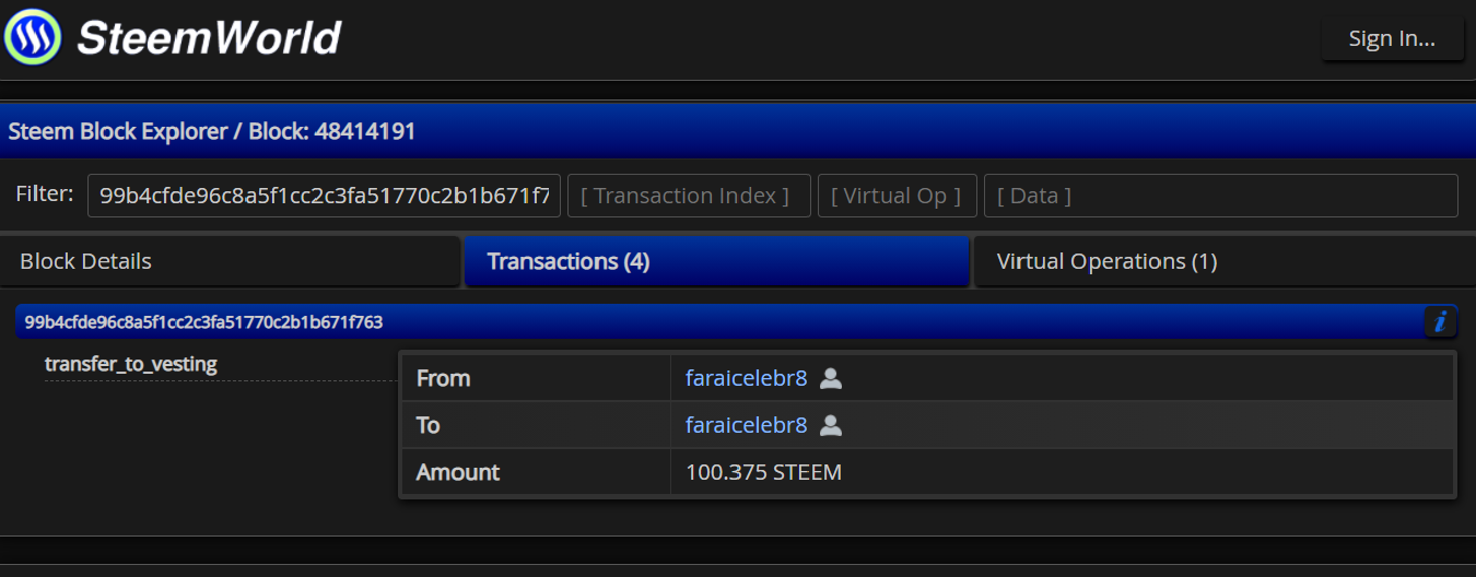 With that said I managed to Power Up 100.375 Steem (Transaction ID: 99b4cfde96c8a5f1cc2c3fa51770c2b1b671f763)