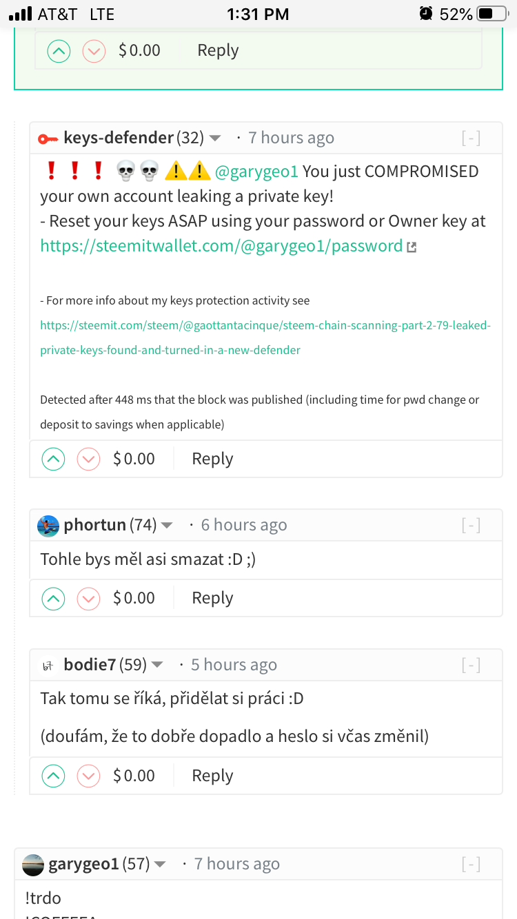 - Automatically reply to the comment/post in which a compromised private key is detected (1x day per user to prevent abuse);