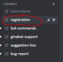Once you've joined, scroll down to the "GINABOT" section and click on #registration.