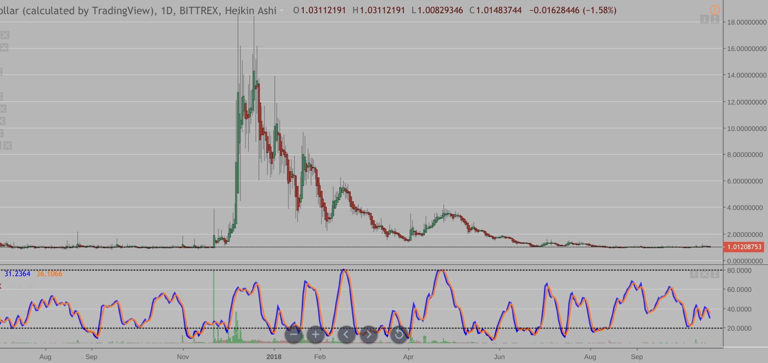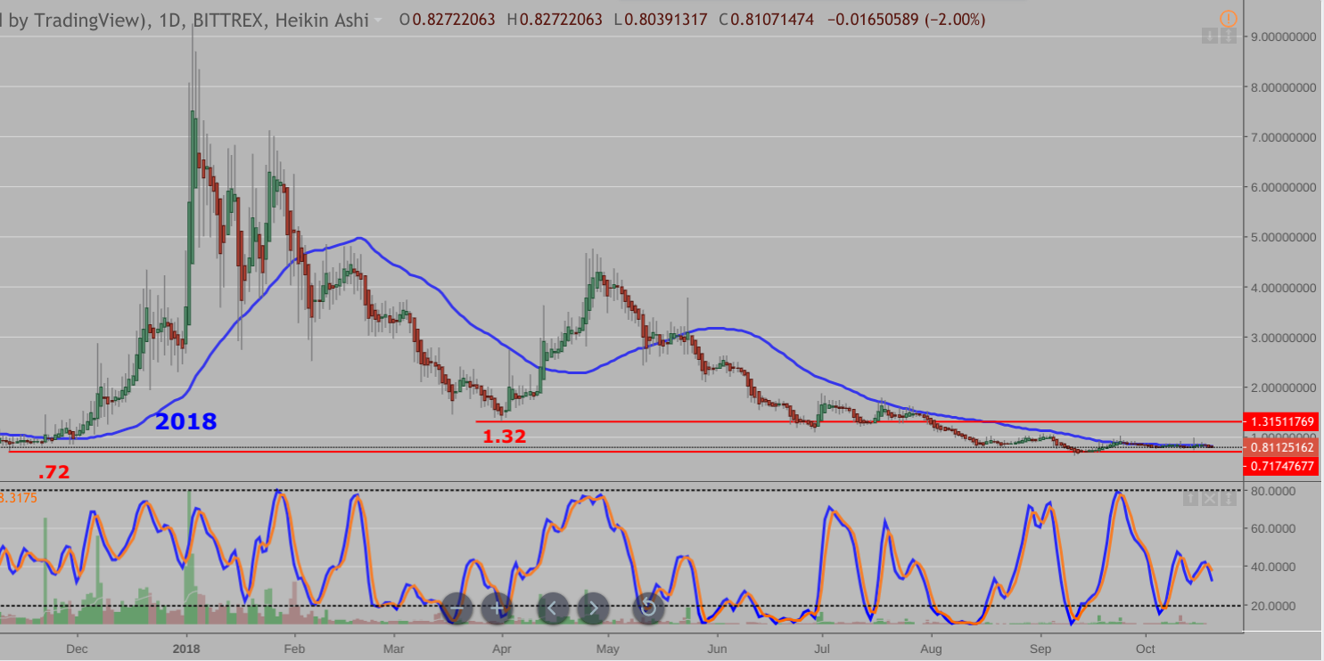 Here is the weekly chart of steem with a heikin ashi overlay on the candlesticks.