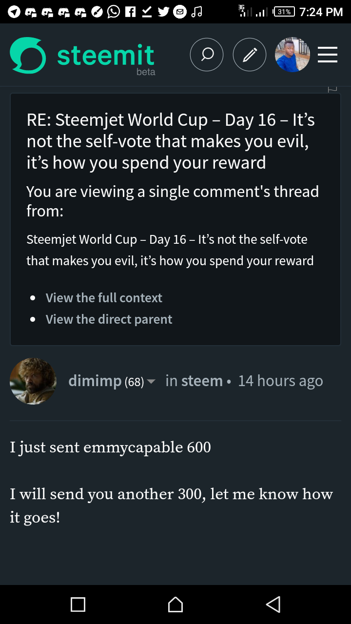 Delegated steem power also hooked up to the official moviestars account of steemjet @steemjetm-stars Thanks for you generosity.