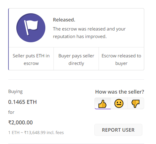 So as you can see I received 0.1465 ETH with Rs. 2000.