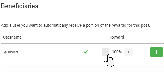 When creating the post "simply" set the account @likwid as beneficiary.