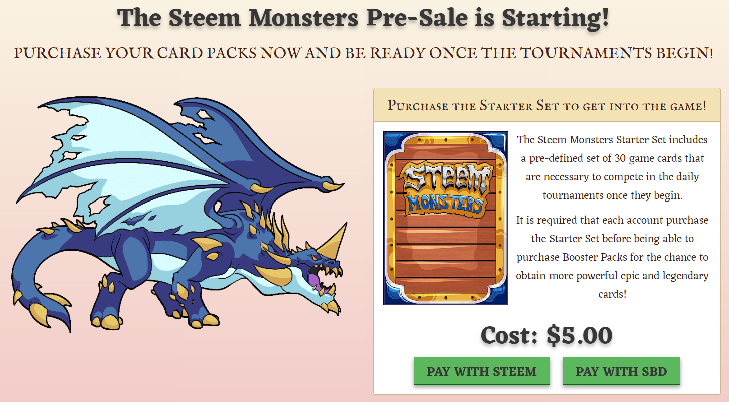 Right now the game tournaments has not started to what you can do is login using your normal steemit account and there you are able to buy a starter pack. Here is the link to get into the game: https://steemmonsters.com/