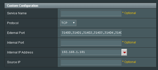 Forwarding ports on router settings page