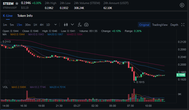 STEEM price 3/27 $.1946steemCreated with Sketch.jrcornel.wit (61)in #steem • 3 years ago https://www.mexc.com/exchange/STEEM_USDT?_from=search_spot_trade #price