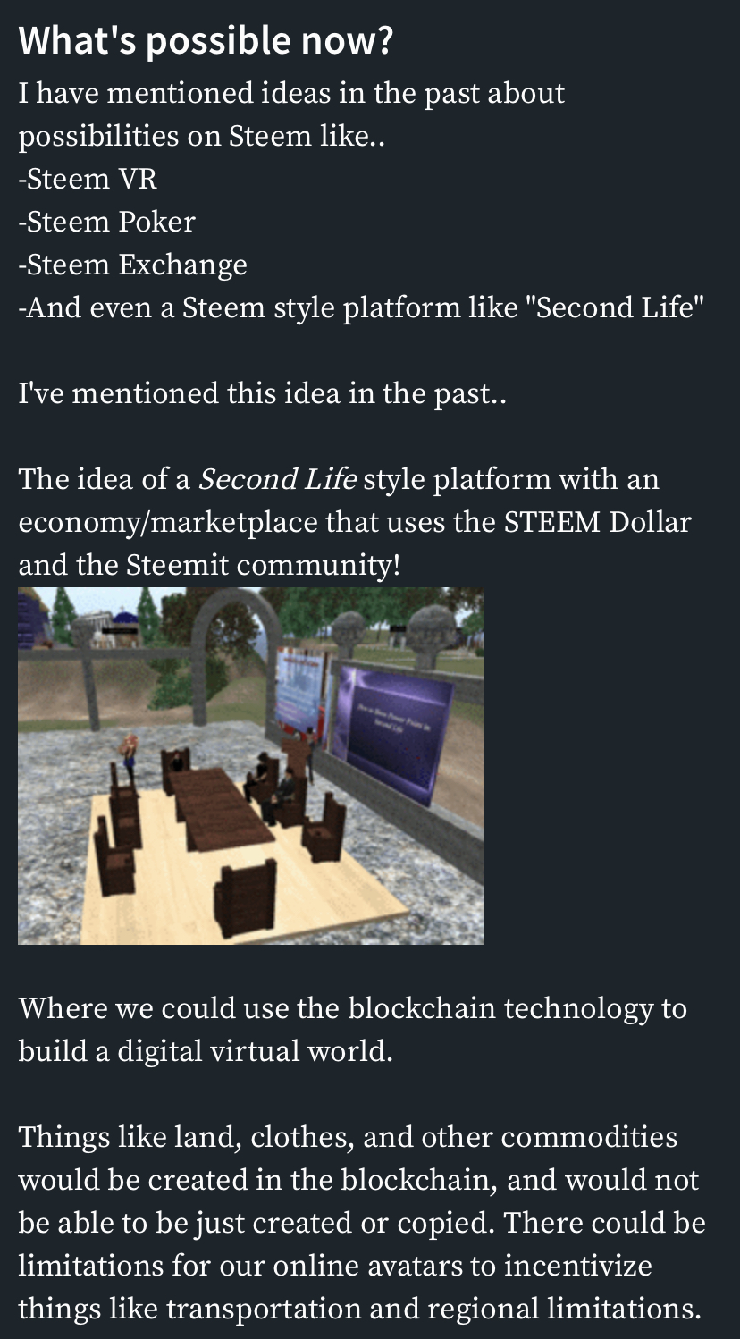 Keep in mind that this post was made almost 4 years ago, and almost everything has came true except a VR Steem world.. 🤔