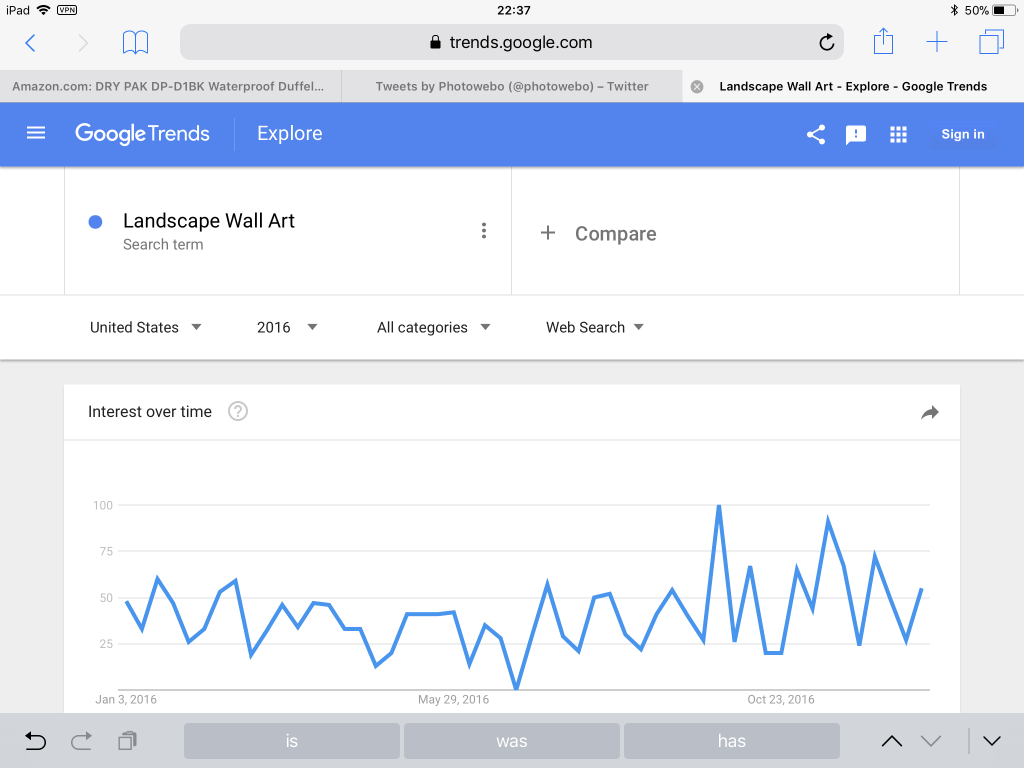 My past models have been for retail photographic administrations, yet shouldn't something be said about compelling artwork? Is there a period when people look for scene divider workmanship more than others? Ask Google Trends: