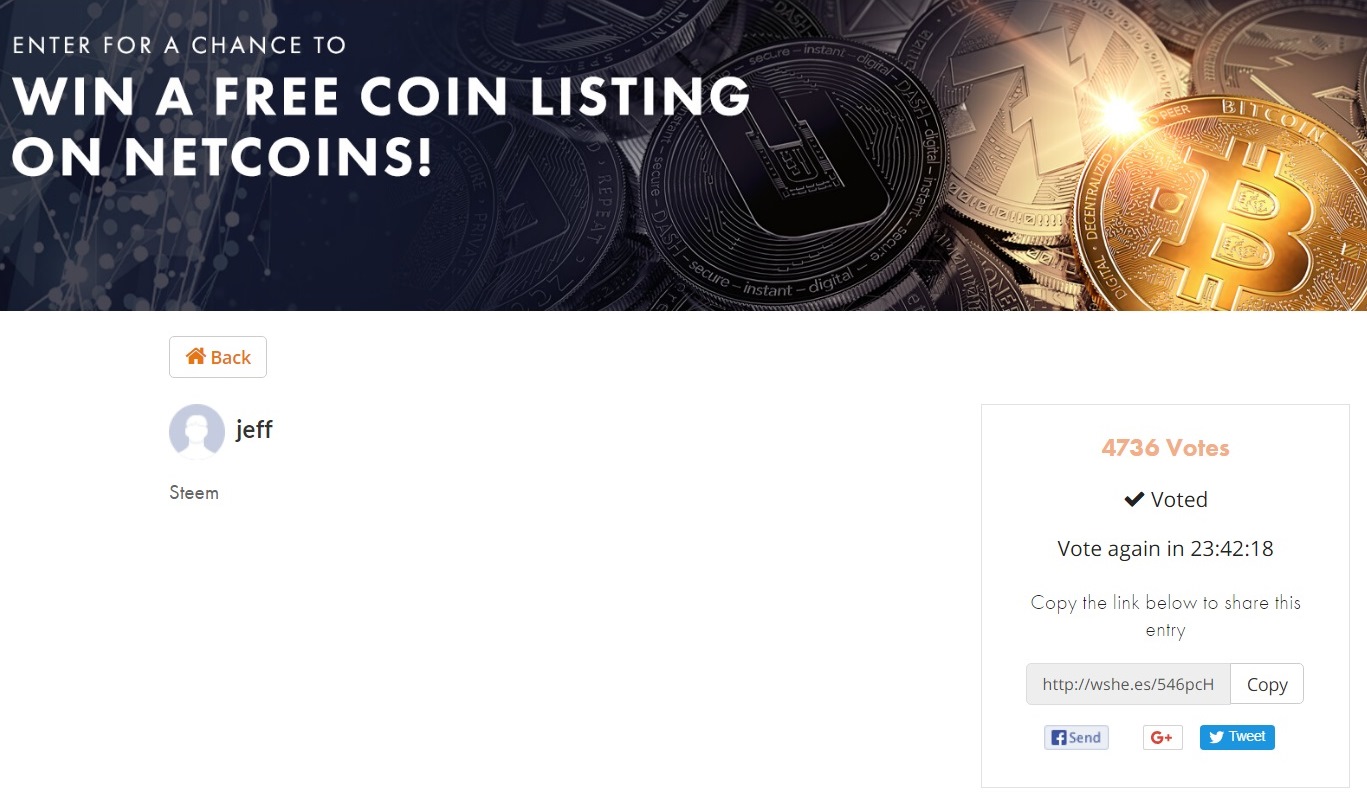 All we need to do is vote for STEEM. It is super easy, and we can vote once per day! At the moment, we are still in third place, but we aren't trailing by that much. Here are the tops three coins in the running: