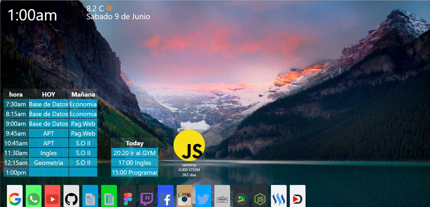 Last summer I was developing my own chrome extension, but I never end it. The only functionality is the replace of the default new tab page into a page who display information like time, climate, subjects of the day, task and activities pre-programmed and web pages.