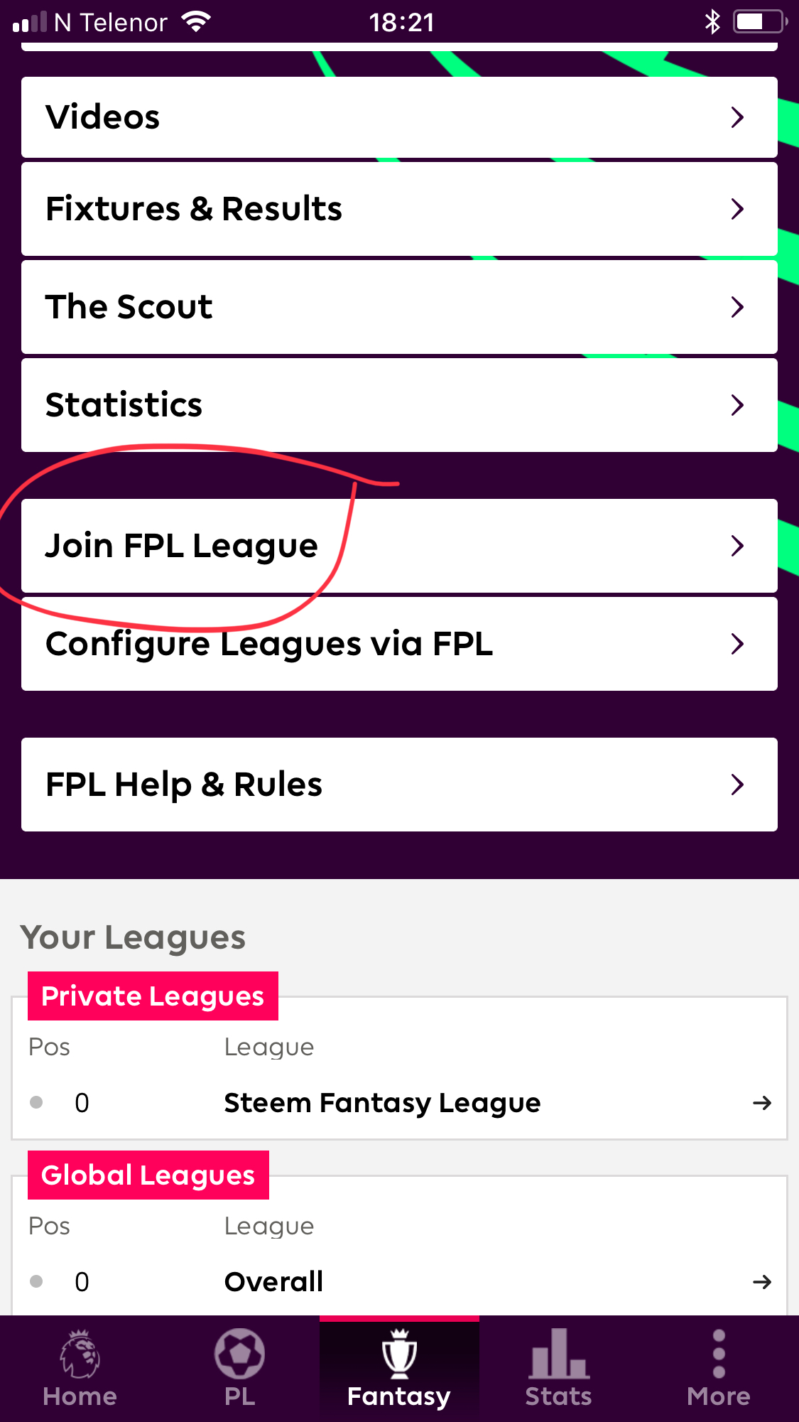 After reading the rules you can click Join FPL League.
