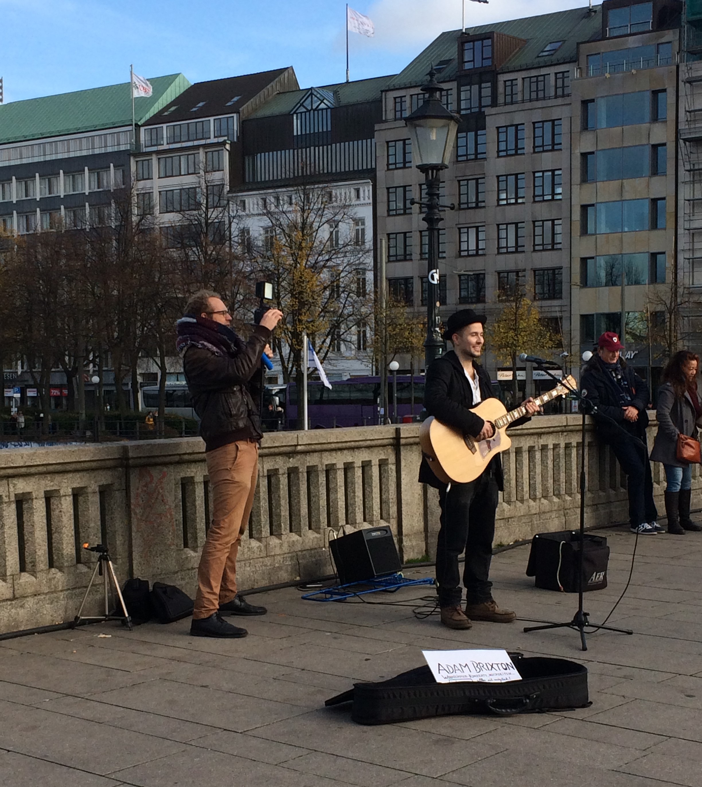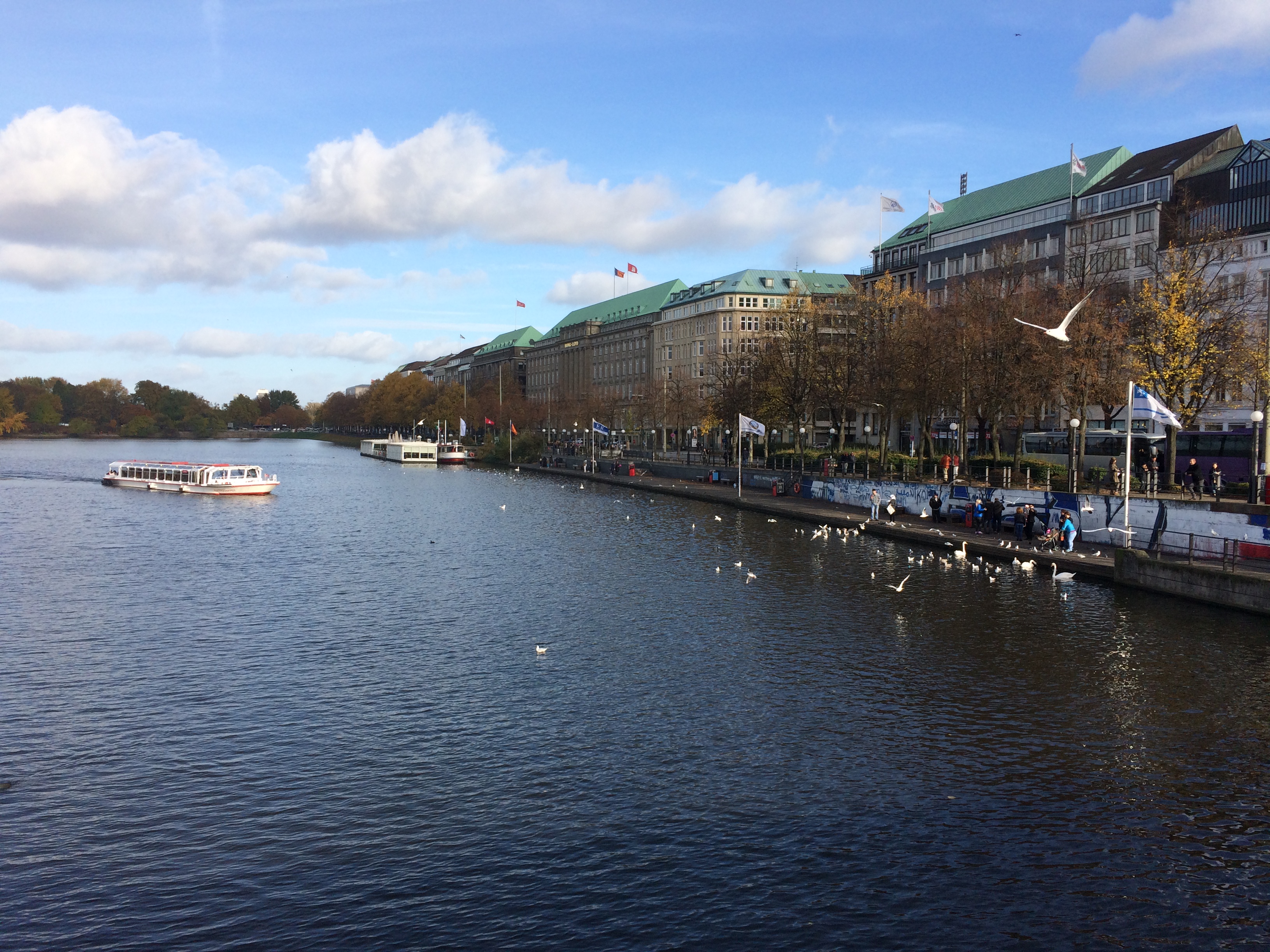 The tour starts at the Jungfernstieg on the Binnenalster and sails once around the Außenalster near the shore. There's always something going on at Jungfernstieg, where you often meet street musicians or other small artists.