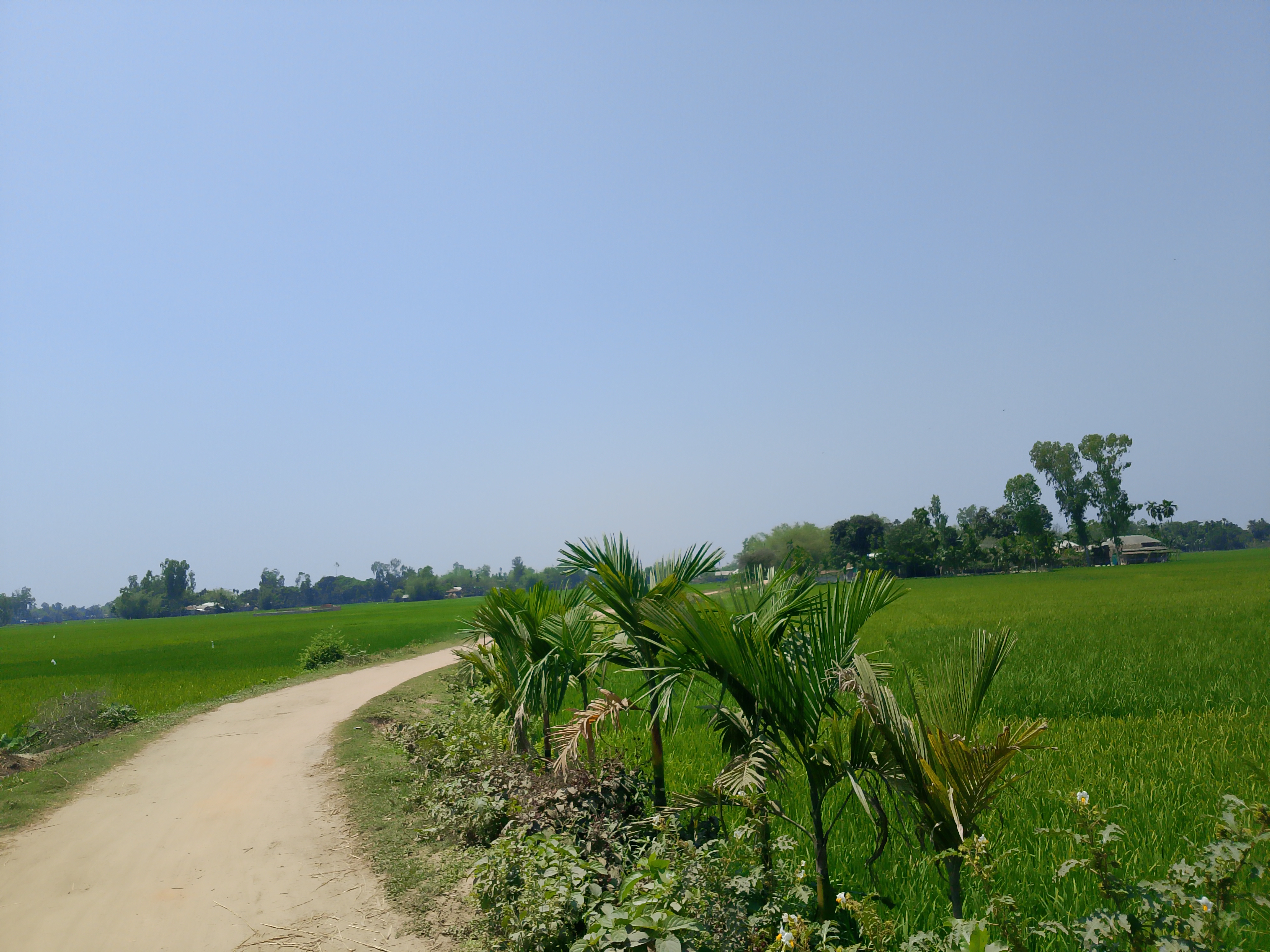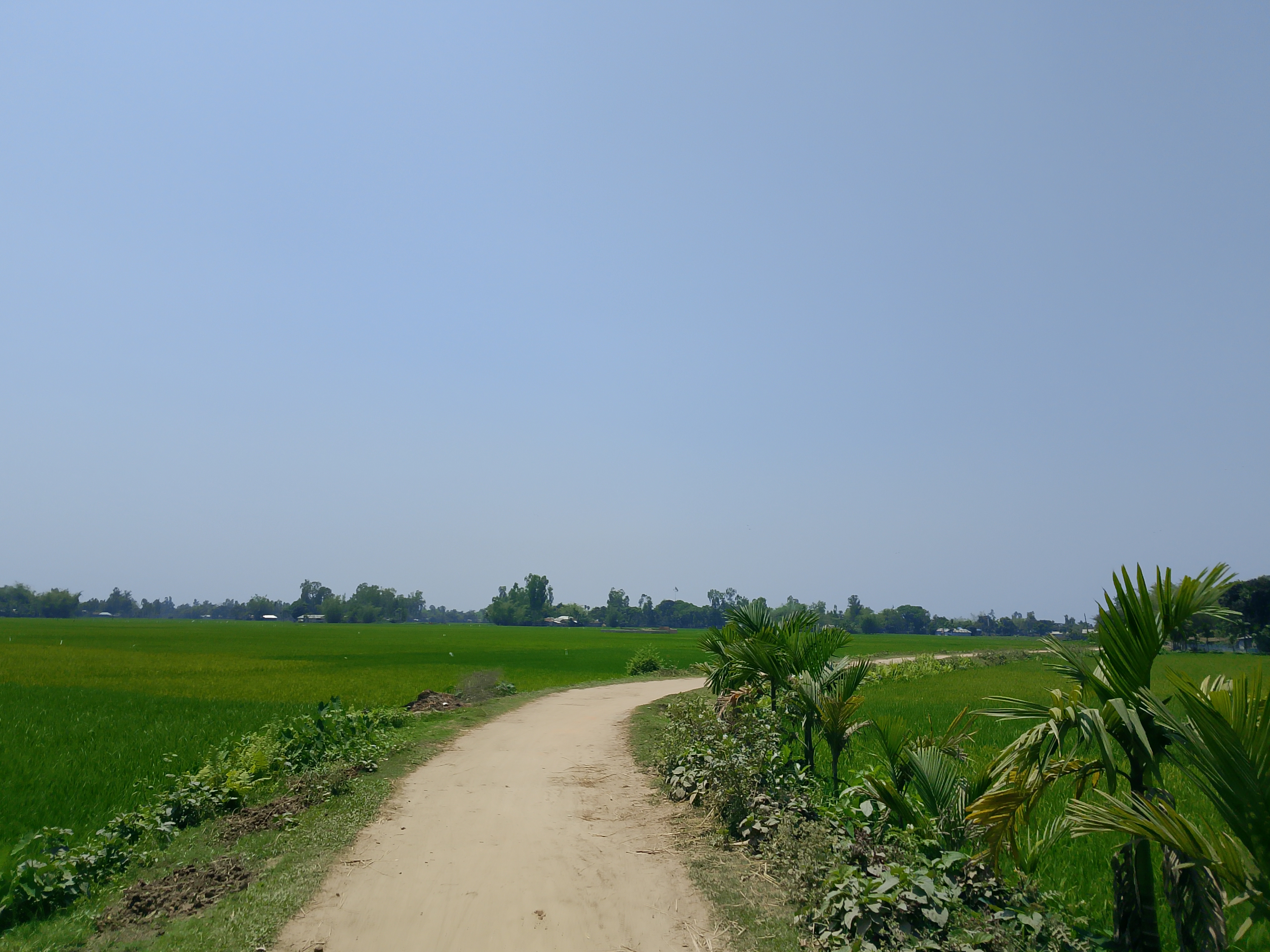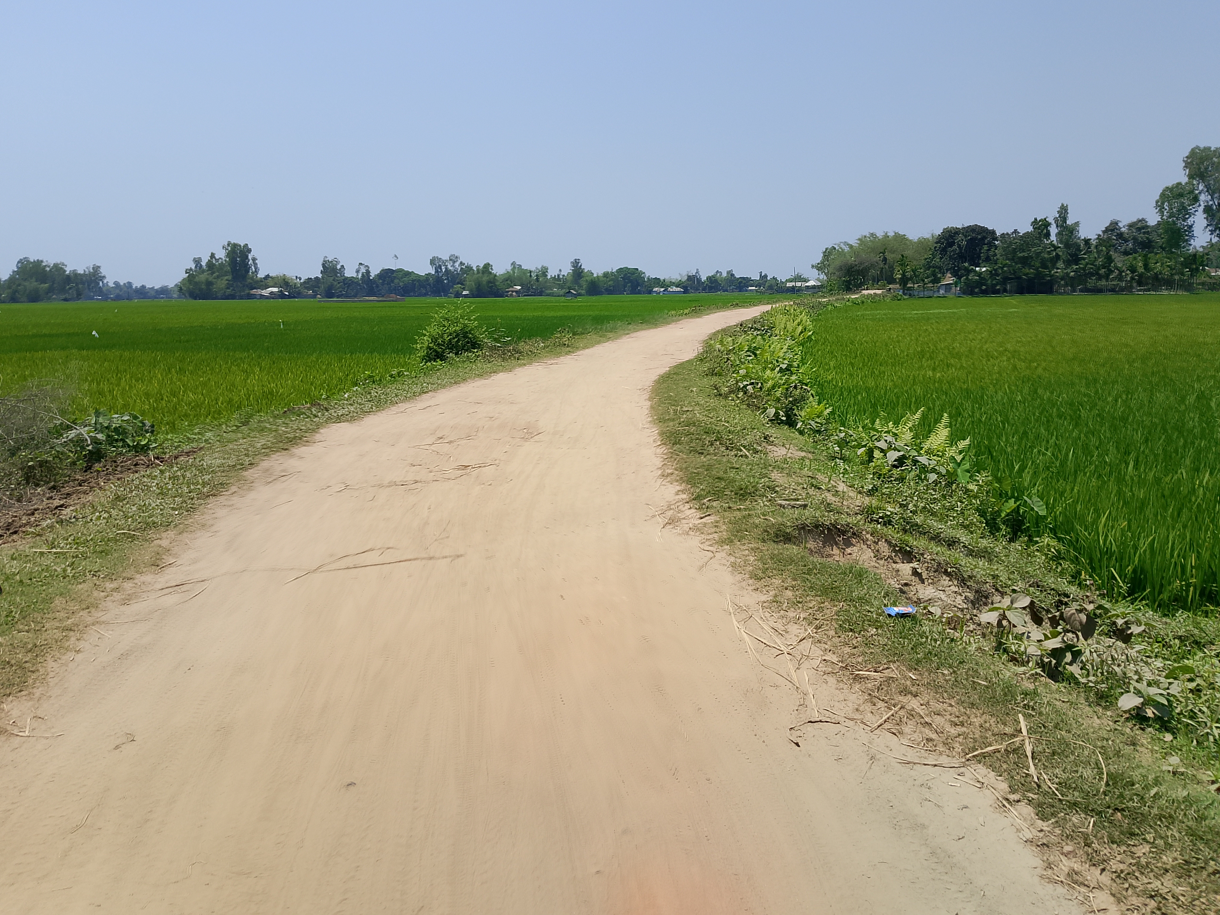 A rural road with natural beauty can be seen here, and it is still an earthen road. In our country, such roads are not very common now, but this road is made of soil. Gradually, it may be replaced, and this earthen road may no longer remain.
