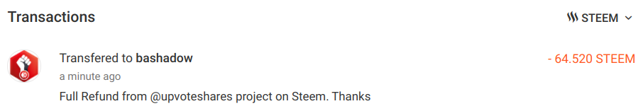 All shares (64.52 Steem) from @bashadow have just succesfully been refunded.