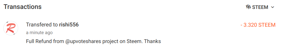 All shares (3.32 Steem) from @rishi556 have just succesfully been refunded.