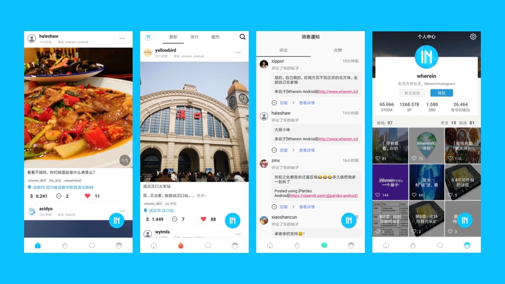 Based on the Steem blockchain protocol, we have developed a social media payment platform that demonstrates lifestyle——WhereIn (www.wherein.io). At the initial stage, we used WhereIn to explore the application of Instagram in the blockchain direction, and also integrate people’s social life with business payments more effectively. Now, the concept has been officially launched, and achieved some milestones, there is still more work to be done. The sky is our limit.