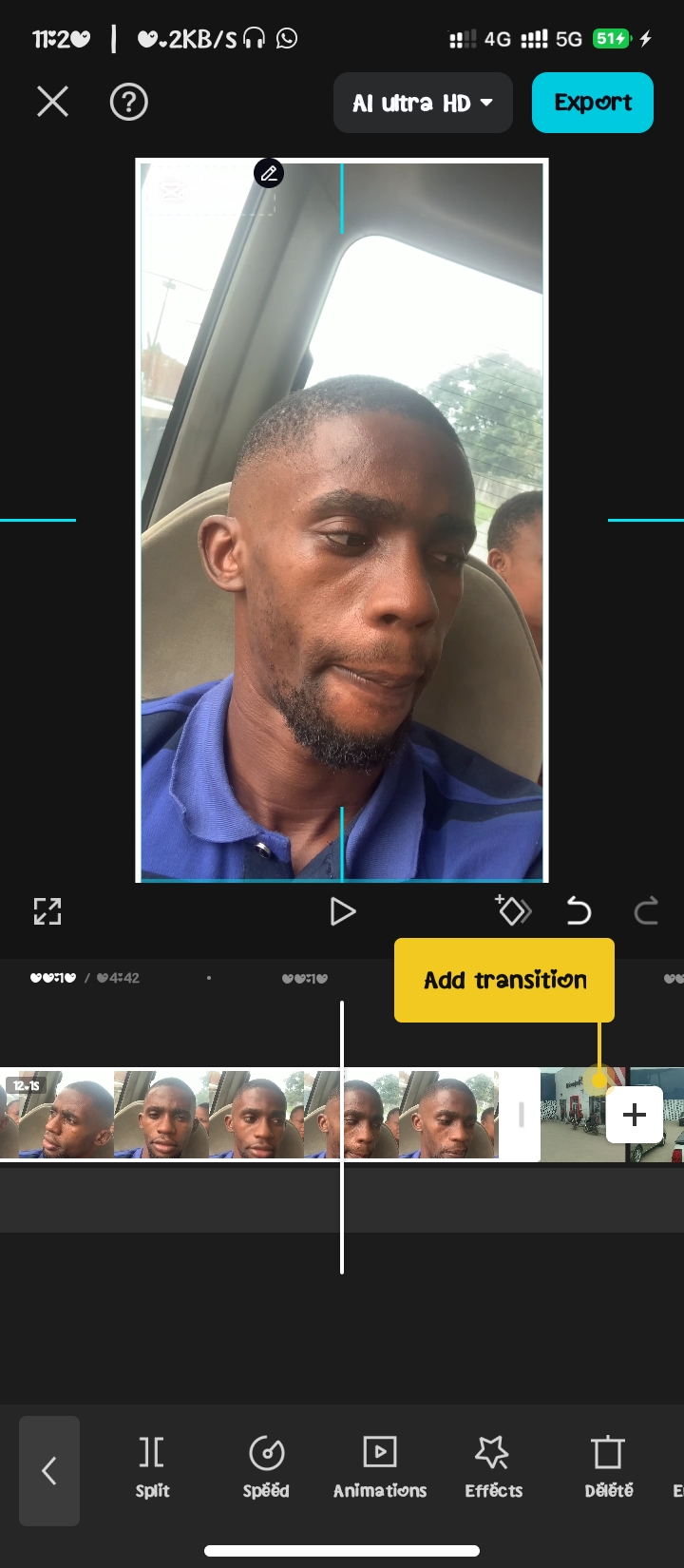 With the help of the split icon, I cut videos into two then deleted the part I didn't need. For some I used the drag bar to delete it off. In no time I was done sorting and arranging the clips to my taste. Something was missing after arranging this videos and I knew I needed a background song to help me know how to go about the transitions from one clip to another.