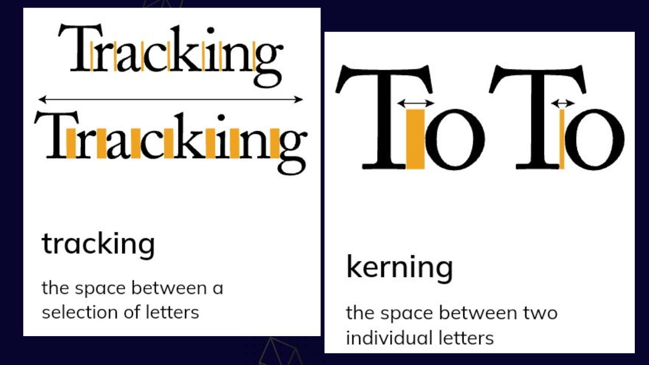 Kerning and tracking are also important terms I deemed fit to add to this lecture. The term and it meaning is capture in the images below. It has to do with letter spacing and adjustments for better presentation.