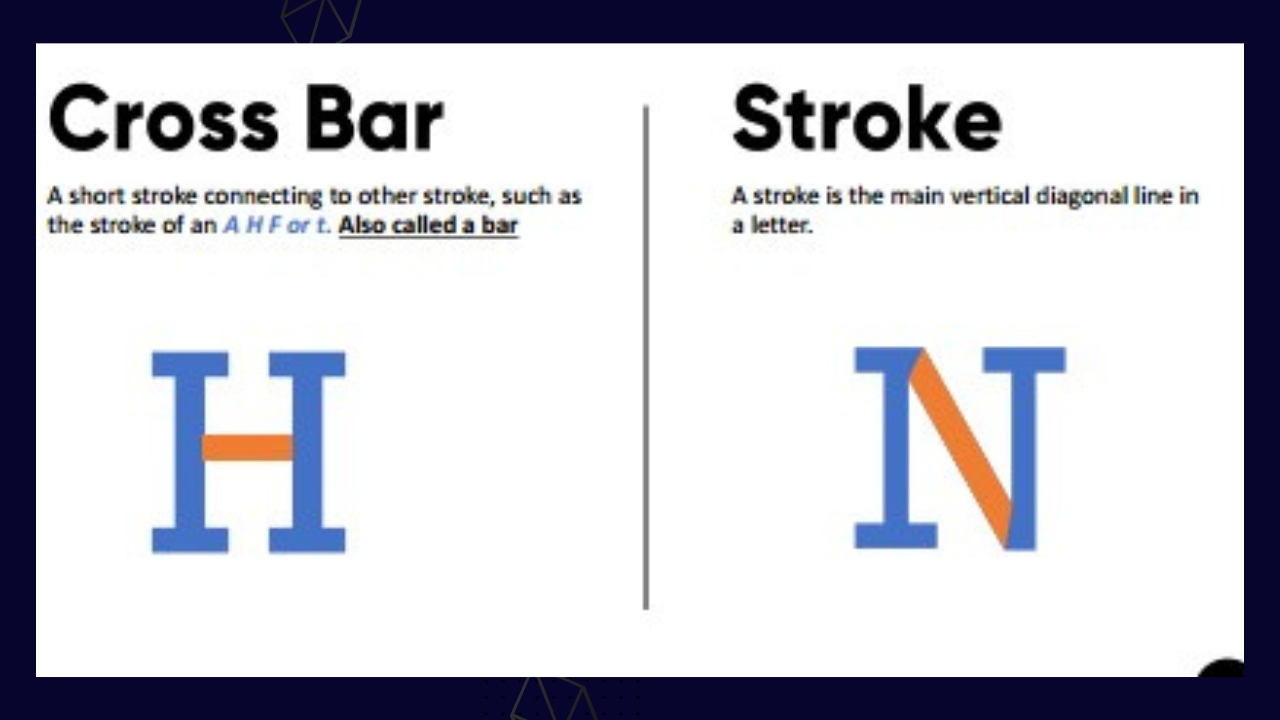 Cross bar: this is used to describe a stroke connecting one stroke to the other just as seen in letter "H"