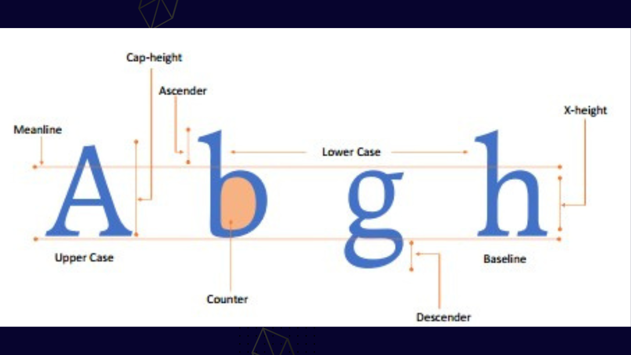 In this section, we will be looking at some terms and elements that makes up this subject. By now, we understand that typography simply means the systematic or skillful arrangement of typeface or text in a well presentable and appealing form.