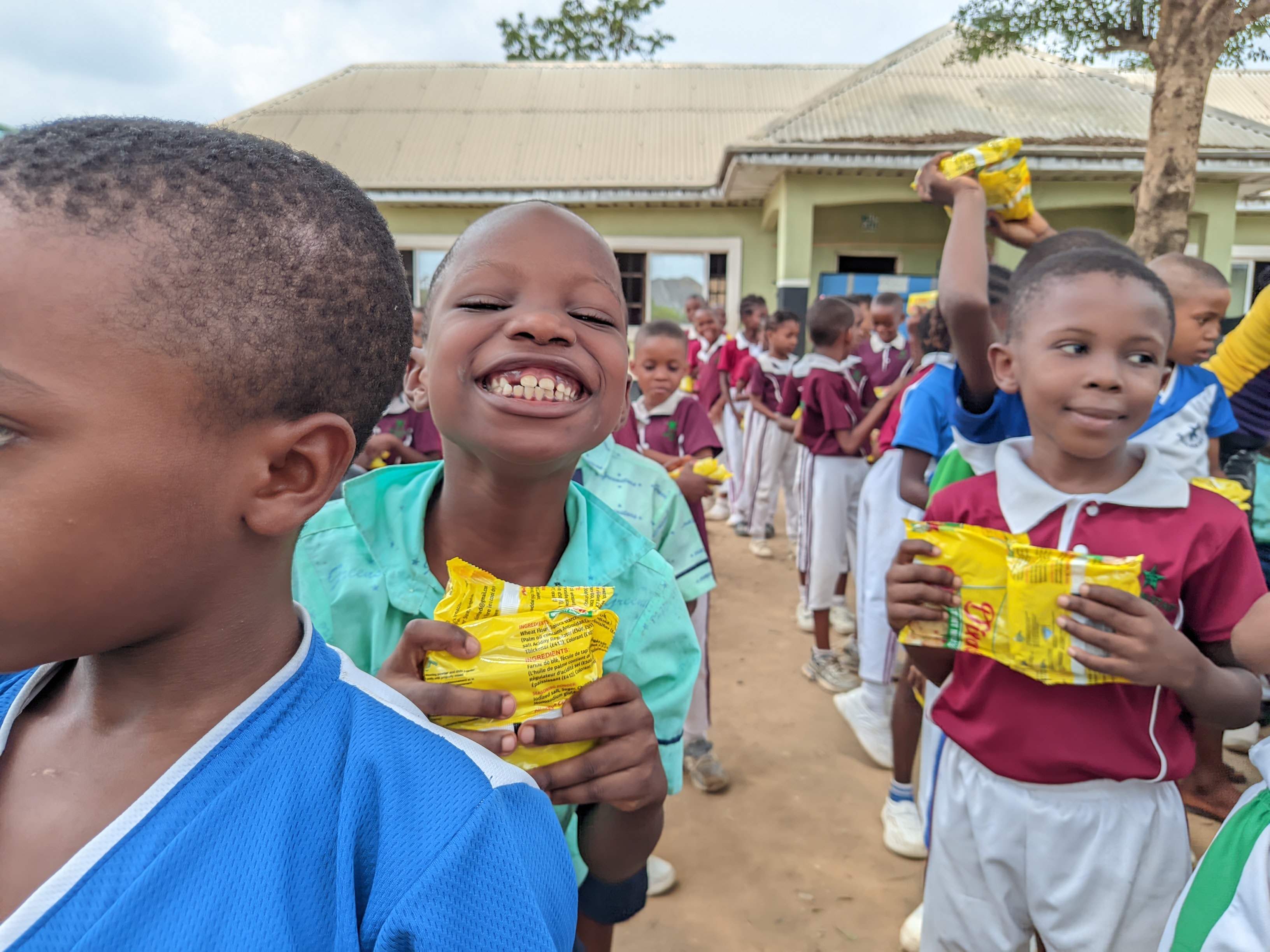 Apart from lighting up their faces to produces beautiful shots by the distribution of this edible substances, this initiatives objectives has been centred on bringing out the inwards happiness and displaying it in facial expression and reactions, as we all know children are very free, the don't hid their feeling, their facial expression can be used to quickly determine their emotions, and that could be seen in these kids, even though some looks very focus since they are seeing our faces for the first time, their expression of happiness on dispersal was something to write home about, the kids really shone like stars, definitely their faces was glowing and they were filled with so much happiness as they came out to receive their presentation in order.