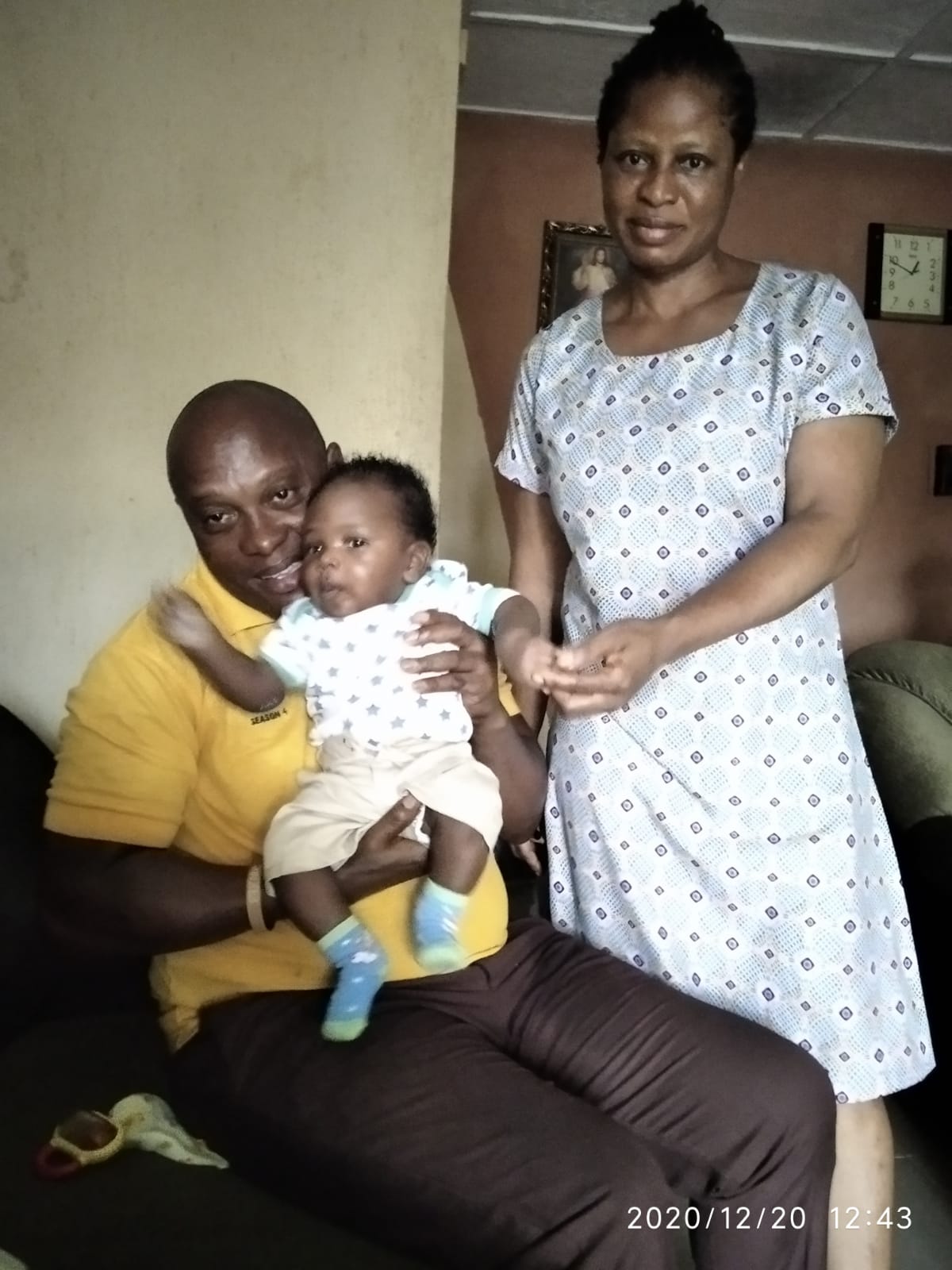 They have been looking for a child for over 8year of their marriage, but God finally answered their secret prayers by blessing them with a bouncing baby boy by native name "Chukwubuikem" English meaning "God is my Strength".