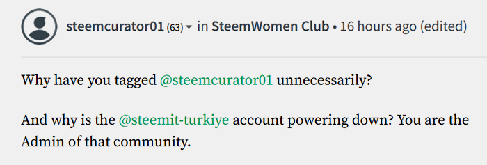 - Stop tagging steemcurator01: Like it has repeatedly been warned, you should not tag steemcurator01 in your posts or comments. Its a lot of distraction and wouldnt earn you any votes. Its better to tag your mentor, community moderator or country CR. And yet, its bad to tag unnecessarily. Only tag your leaders when its necessary to do so. Again, Never tag steemcurator01!