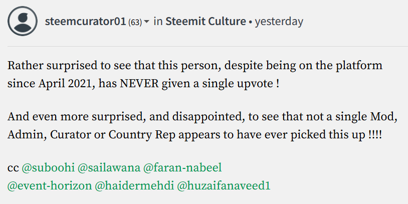 Everyone wants to get support from the top account on Steemit - steemcurator01(SC01). Many try to do that by tagging or mentioning SC01. That is very wrong and has been repeatedly discouraged. SC01 has a lot of work to do - checking abuses and curation are two very resource-intensive work it does. Tagging SC01 in your posts diverts its attention unnecessarily from the important work it should be doing.