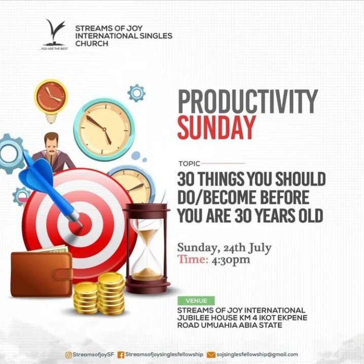 Hey there, how are we doing today?? Last week Sunday during the Singles Church we had our Productivity Sunday were taught 30 things we should do or become before we are 30.