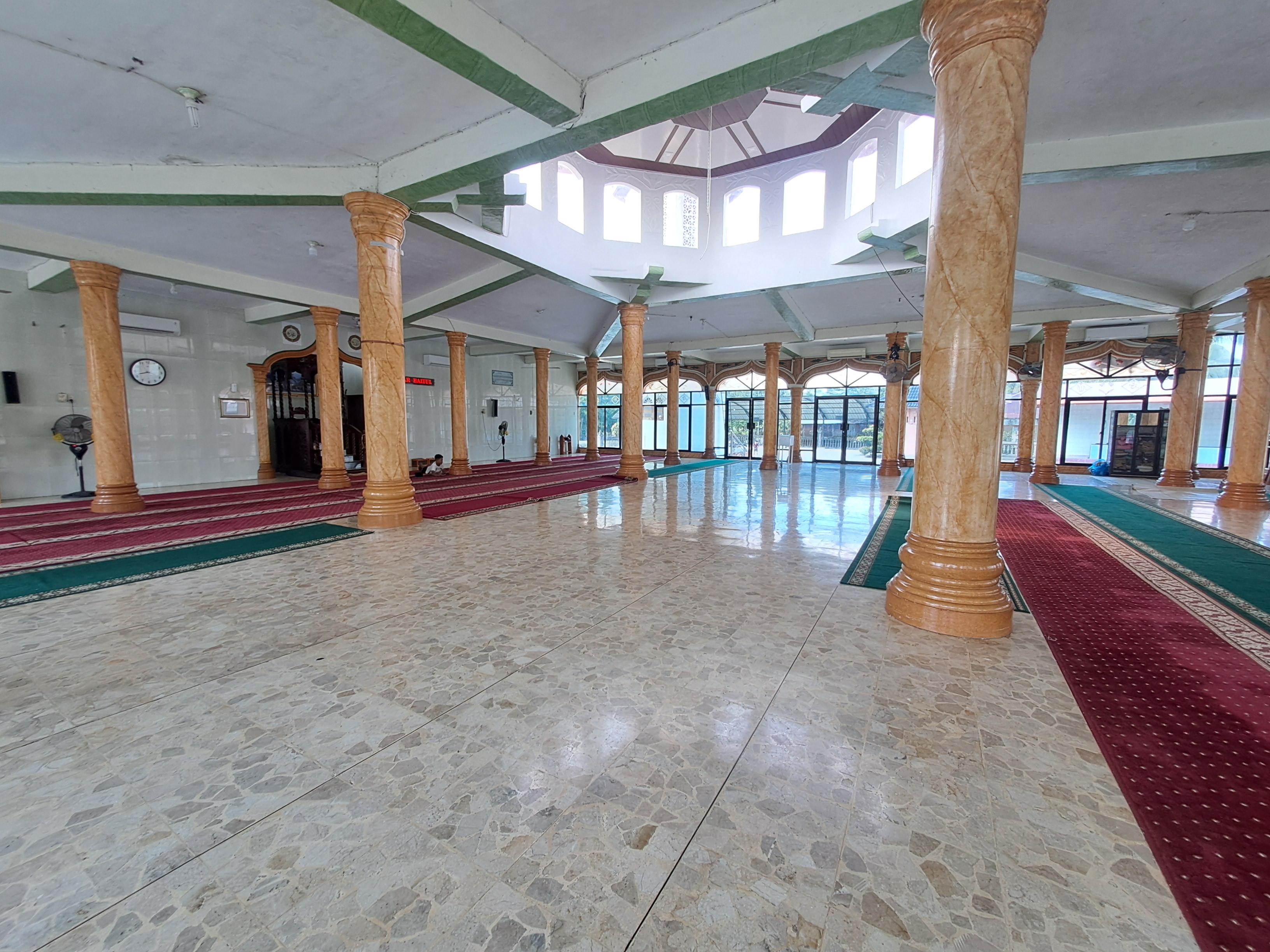 Saat saya masuk ke dalam Masjid megah ini hari ini saya pun langsung di sambut dengan ruangan yang bersih dan di kelilingi oleh dinding kaca sehingga membuat ruangan di dalam Masjid ini selalu terjaga dari debu-debu yang beterbangan dari luar, di dalam Masjid ini juga tersedia karpet Solat yang bersih yang membuat kita bisa menunaikan Solat dengan sangat nyaman di dalam Masjid ini.