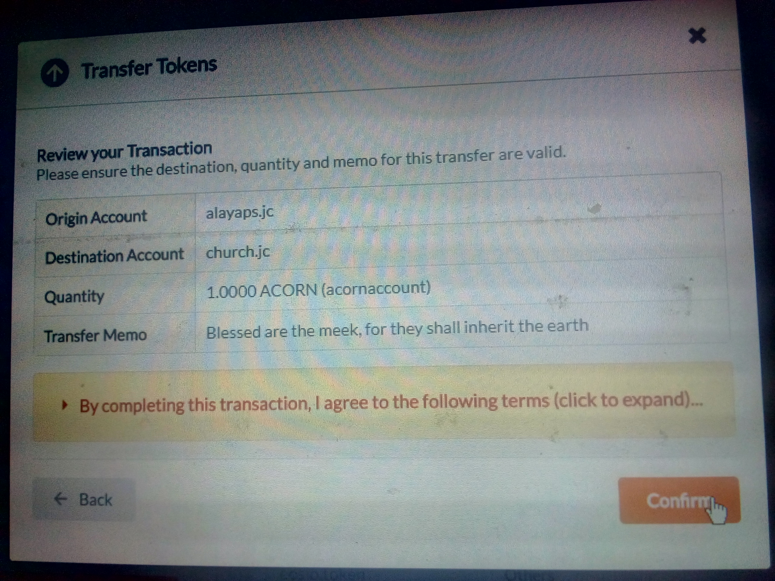 I added Heart to my spqrl wallet and I put my favourite Beatitude as memo to church.jc while sending 1 Acorn.
