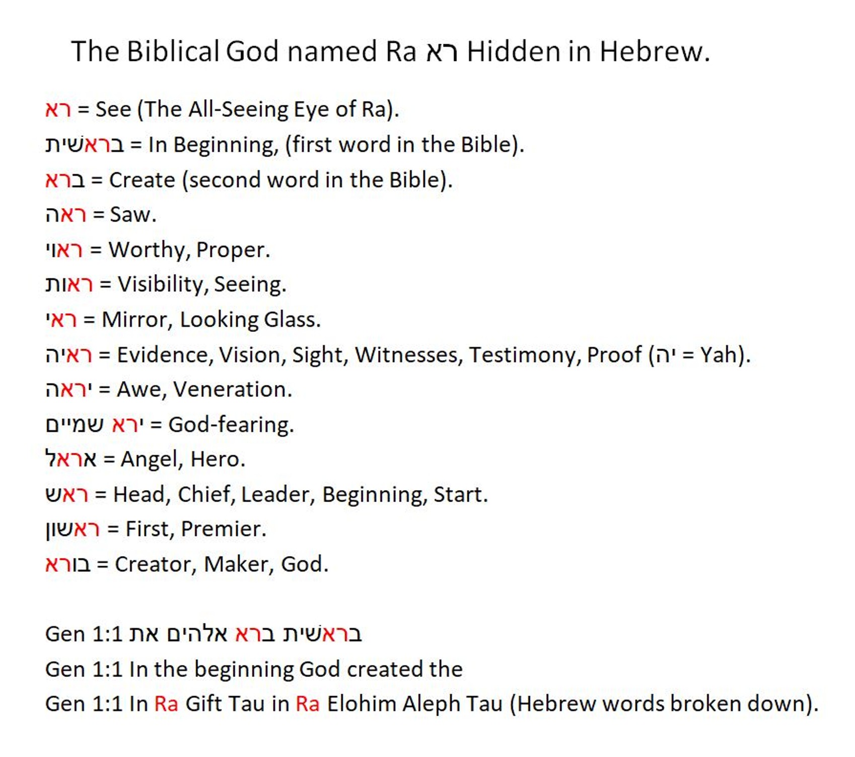 Ra רא found and used in Biblical words.