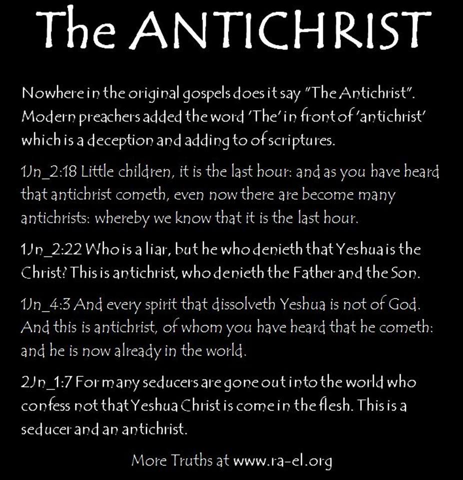 You are probably antichrist yourself. Anti- against Christ. (Readers thought) Let me close this and stop reading because you offended me I am mad at you for telling the truth and not the ones that lied to me. Gosh, you people are something else!