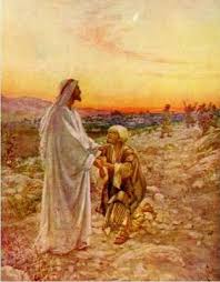 On one of his trips to Jerusalem, Jesus met ten lepers. When they recognized him, "they raised their voices and said: Jesus, instructor, have mercy on us! When he saw them, he said to them: go, show yourselves to the priests. And it came to pass that while they went they were cleansed ... but only one of the ten foreigners came to give glory to God, and Jesus answered and said, There are not ten who were cleansed. And the nine, where are they?
